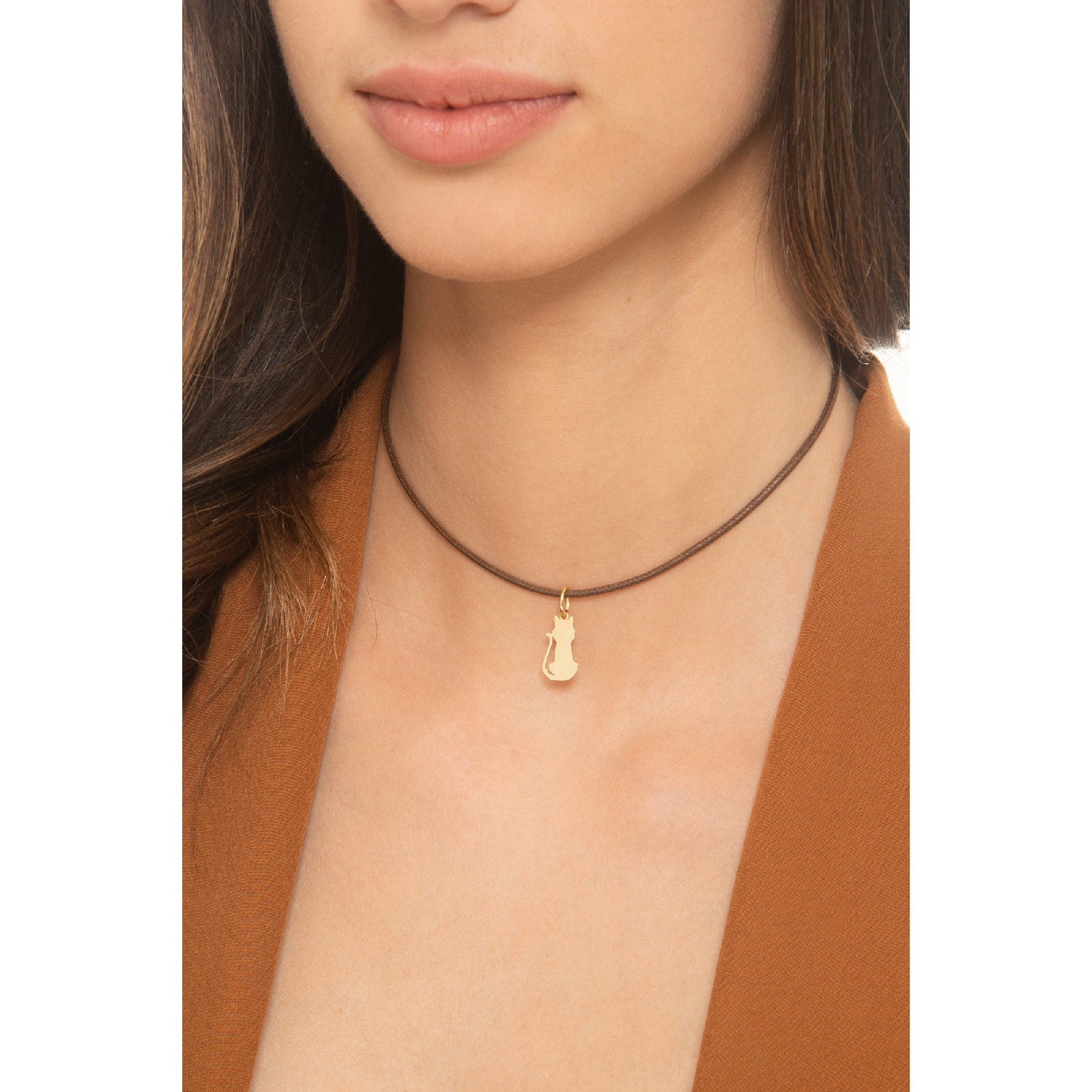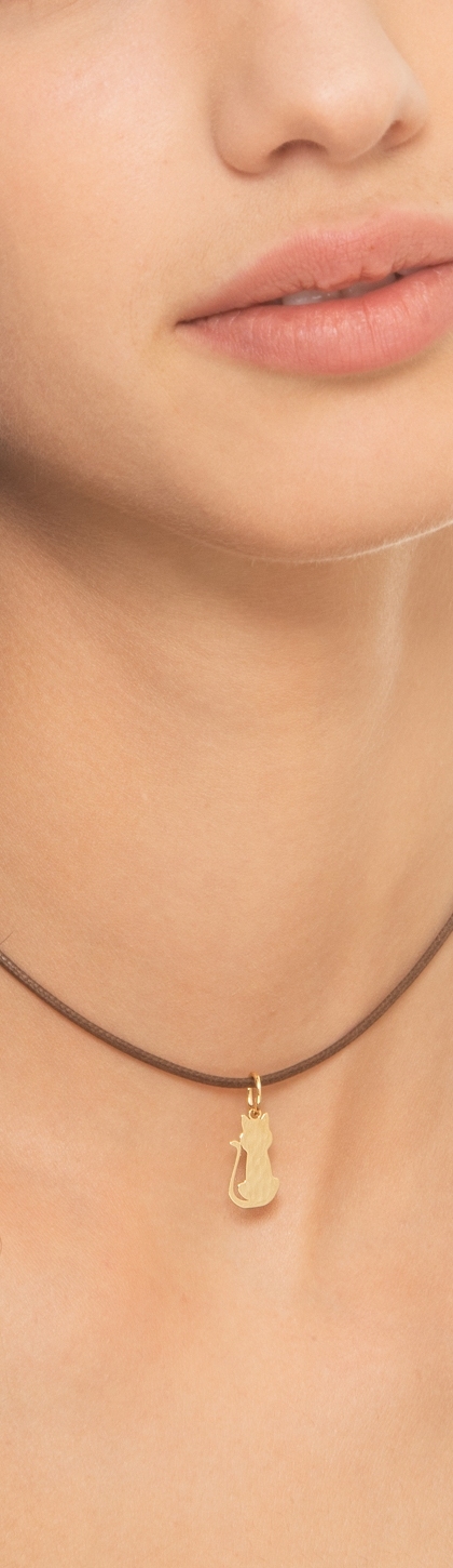 Joyas de Orfebrería: caja marrón intenso con logo en filigrana brillante, interior con soporte de terciopelo blanco y lazo de tela.
