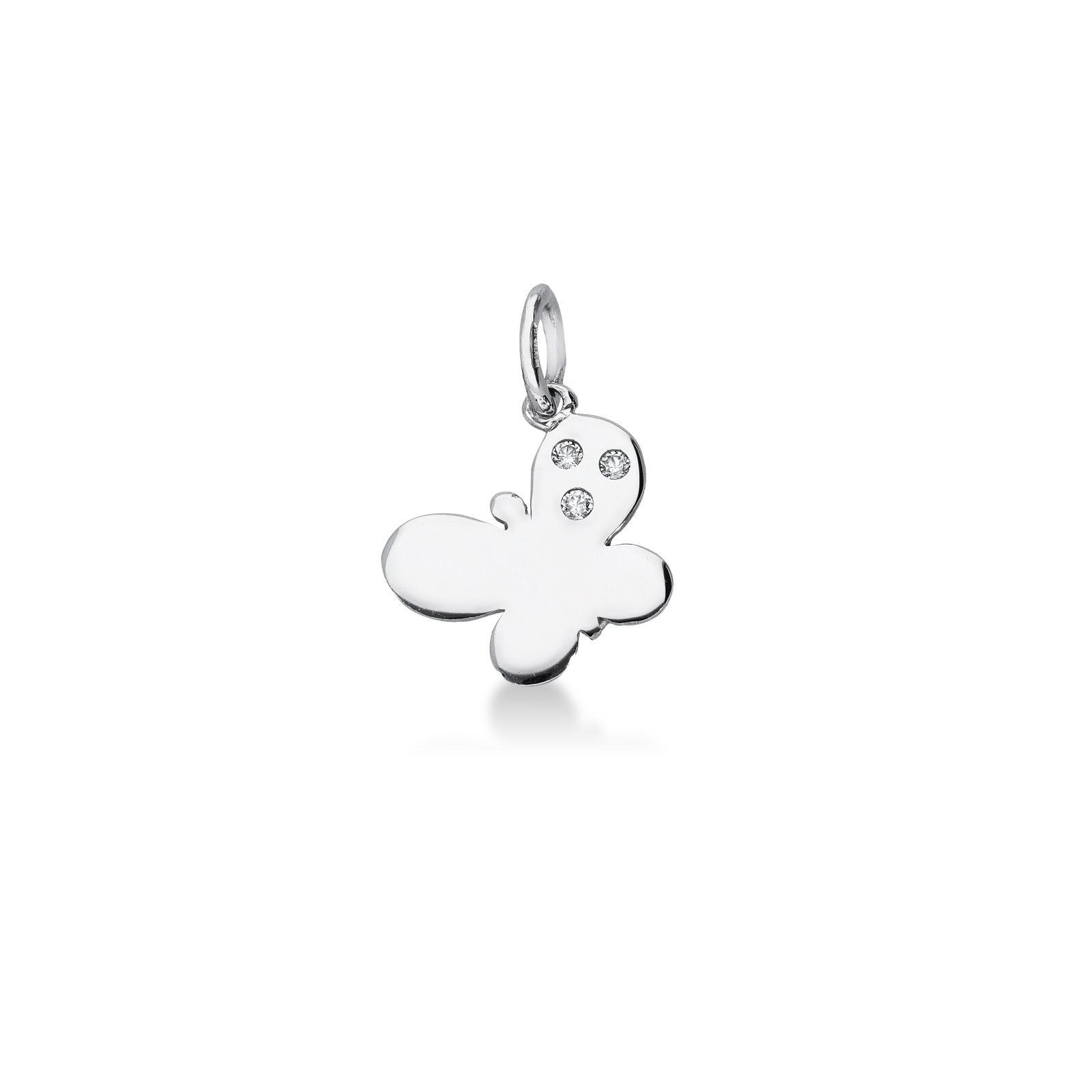 Colgante mariposa en oro blanco 750 con tres circonitas