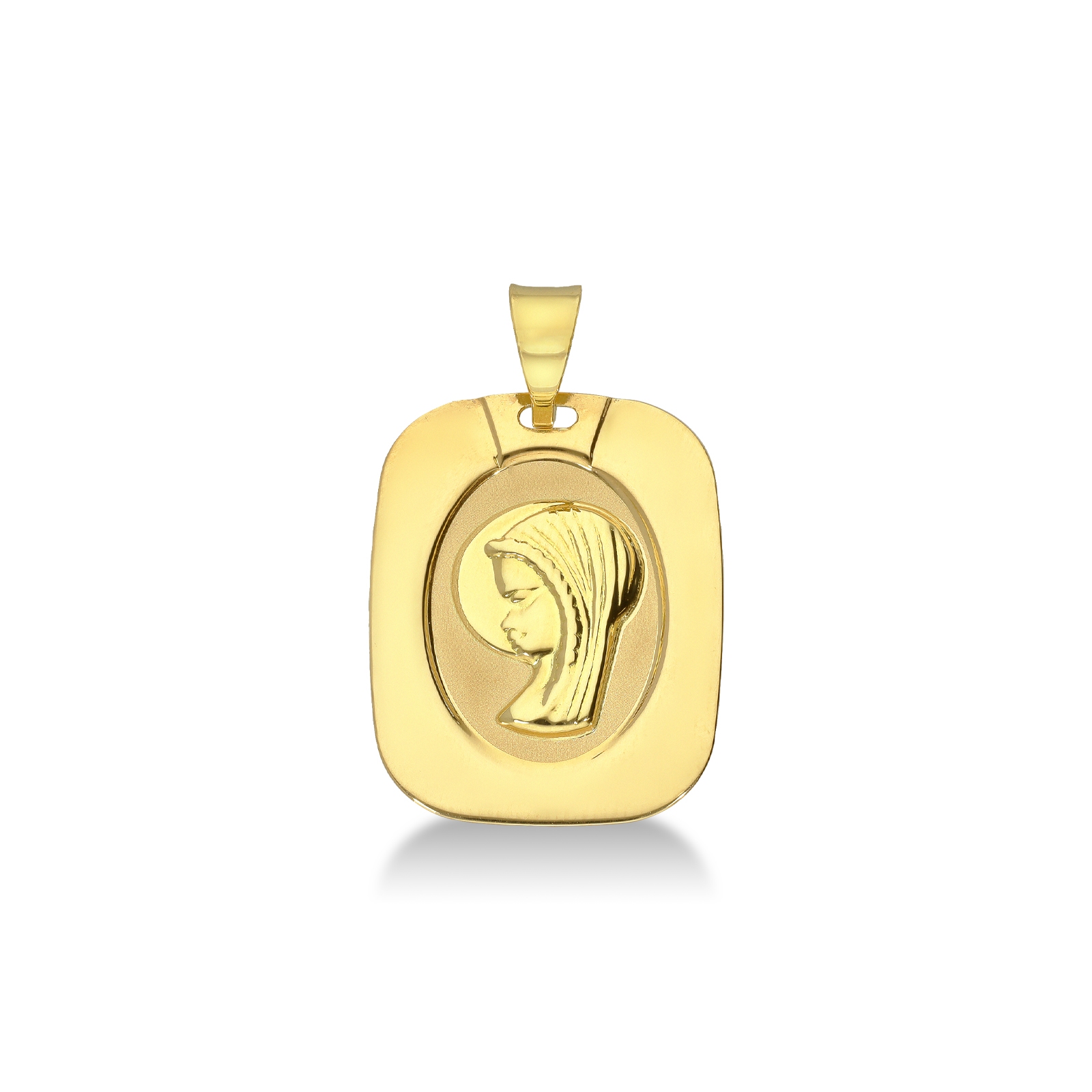 Medalla religiosa de la Virgen realizada en oro amarillo 18k