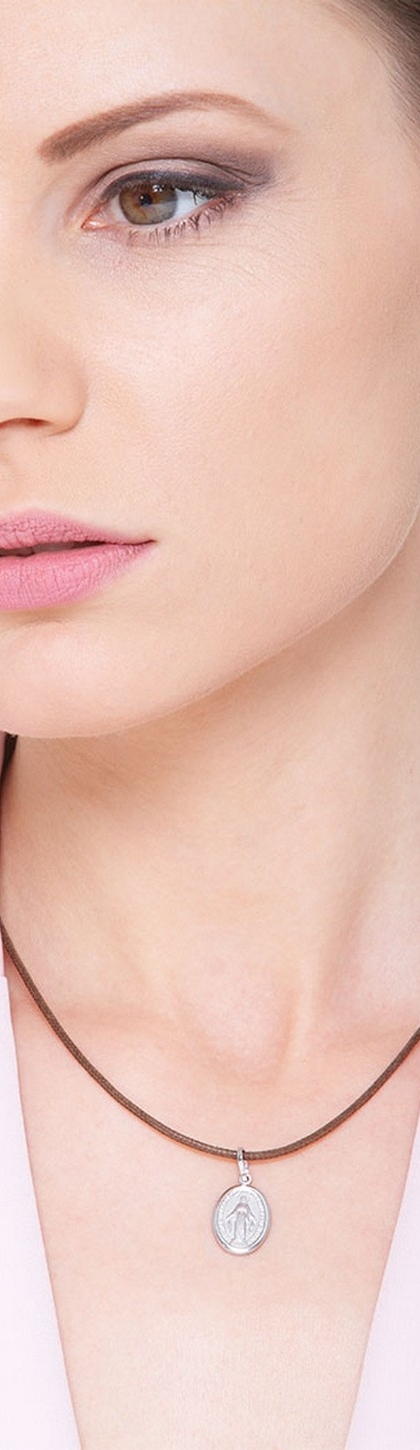 Medalla sagrada de la Virgen en oro blanco de 18k