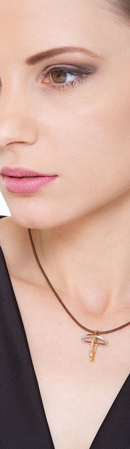 Pendentif croix en or blanc et jaune 18k 2,5 cm