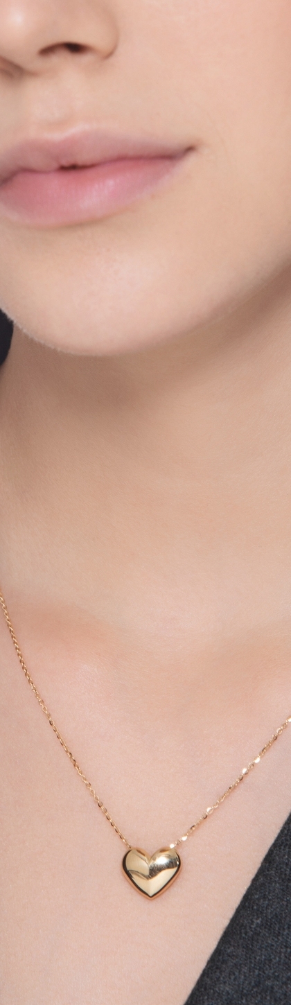 Cadena de oro amarillo 18k adornada con colgante corazón abombado