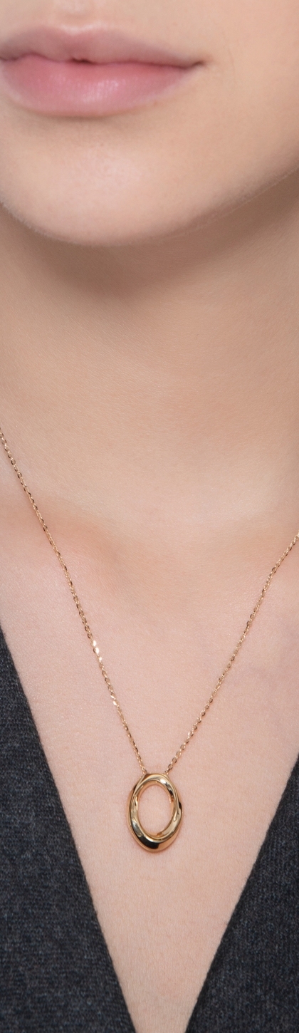 Cadena de oro amarillo 18k realzada con un colgante ovalado