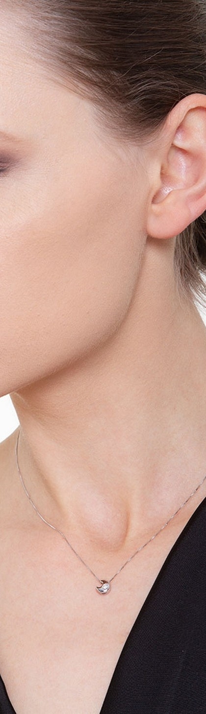 Cadena de oro blanco de 18 kilates con colgante en forma de luna y diamante de 0.04 quilates