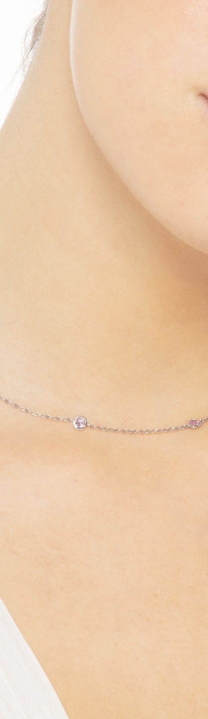 Cadena en oro blanco 18k con 9 zafiros rosa