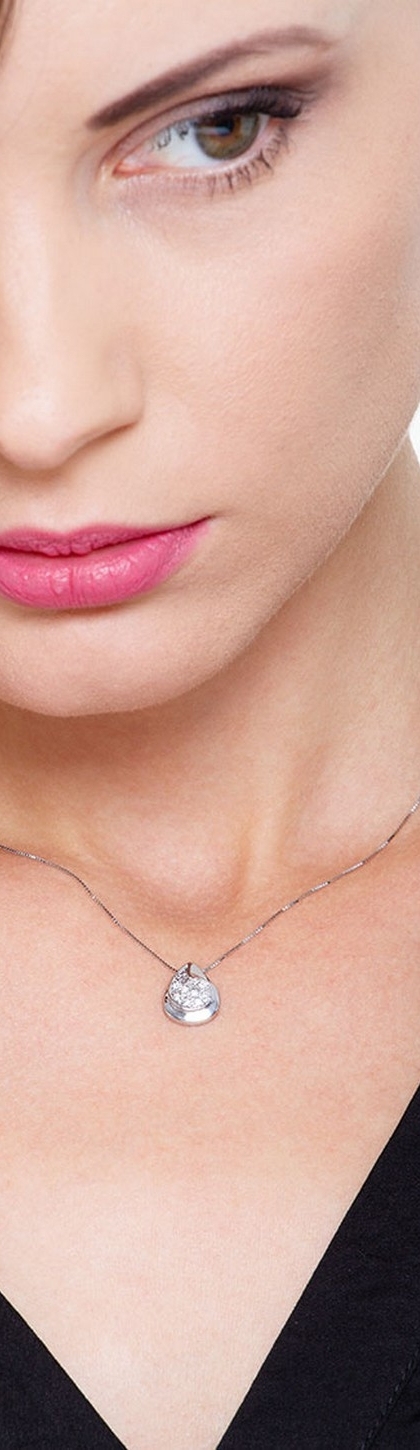 Cadena en oro blanco 18k con colgante gota de diamantes