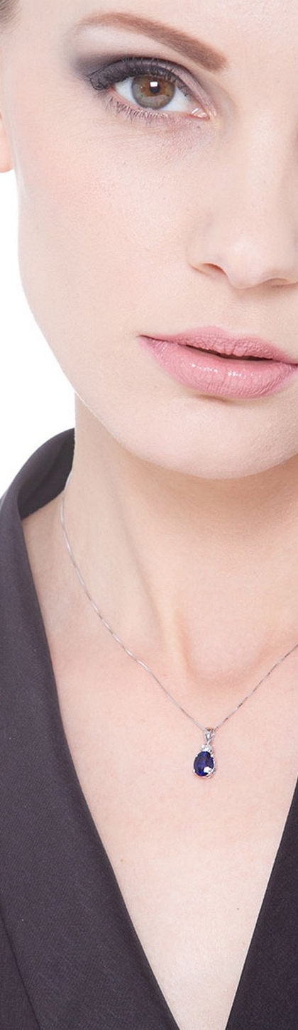 Cadena en oro blanco 18k con diamante y zafiro azul