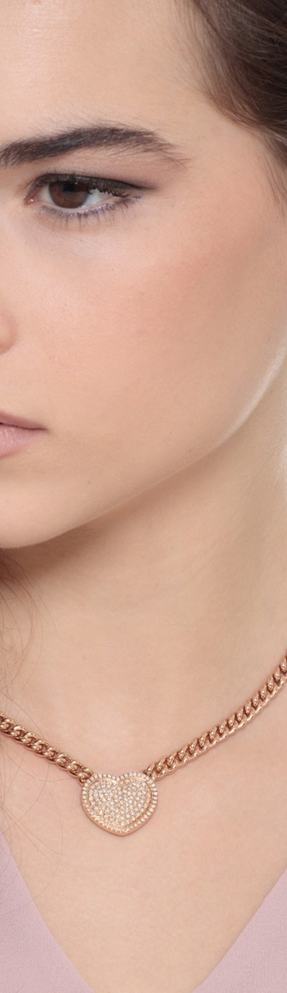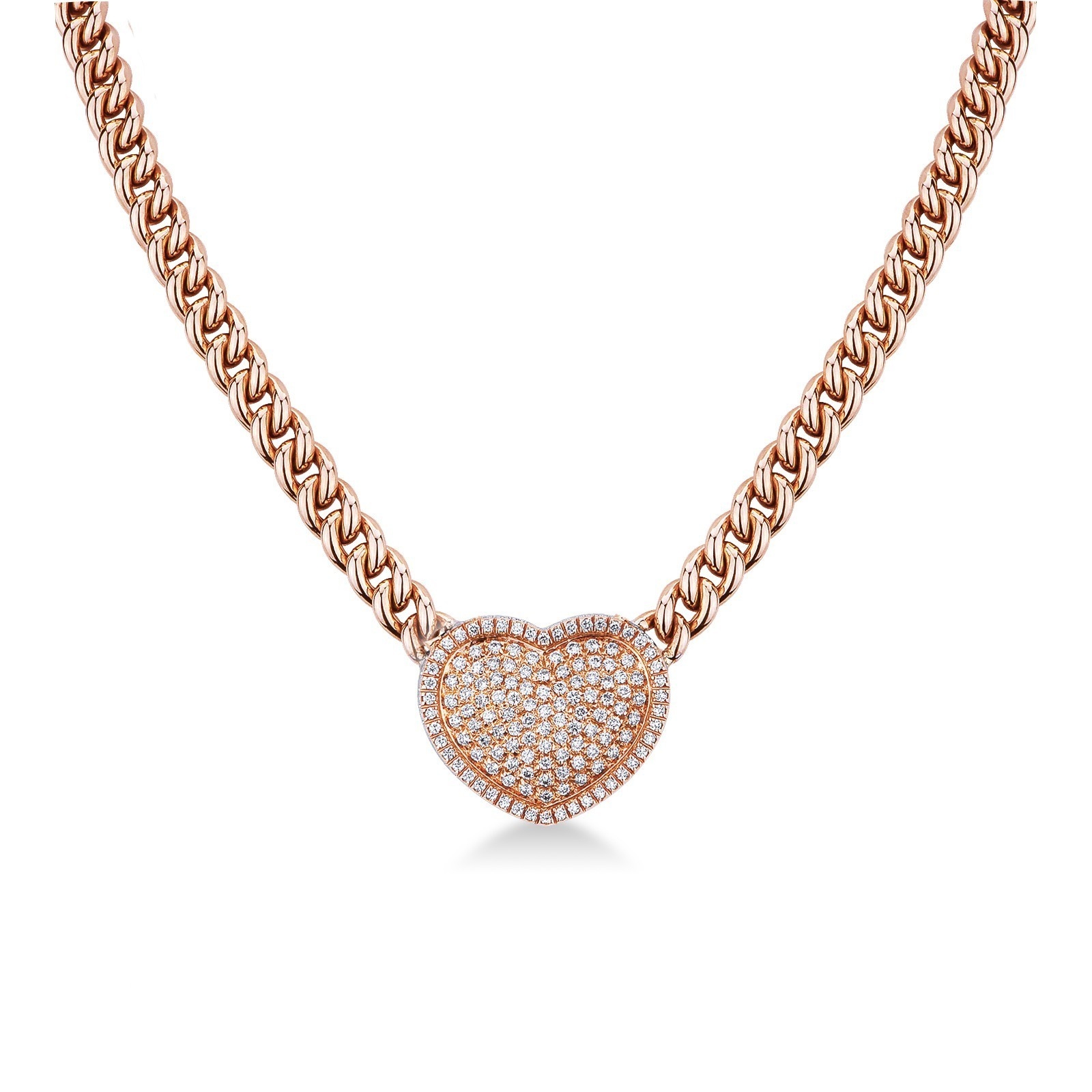 Cadena Groumette Oro Rosa 18k Corazón Pavé Diamantes