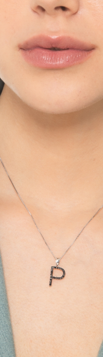 Collar con diamantes negros en oro blanco de 18k letra Z