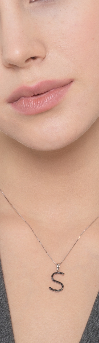 Colgante con initial S oro blanco y diamantes negros