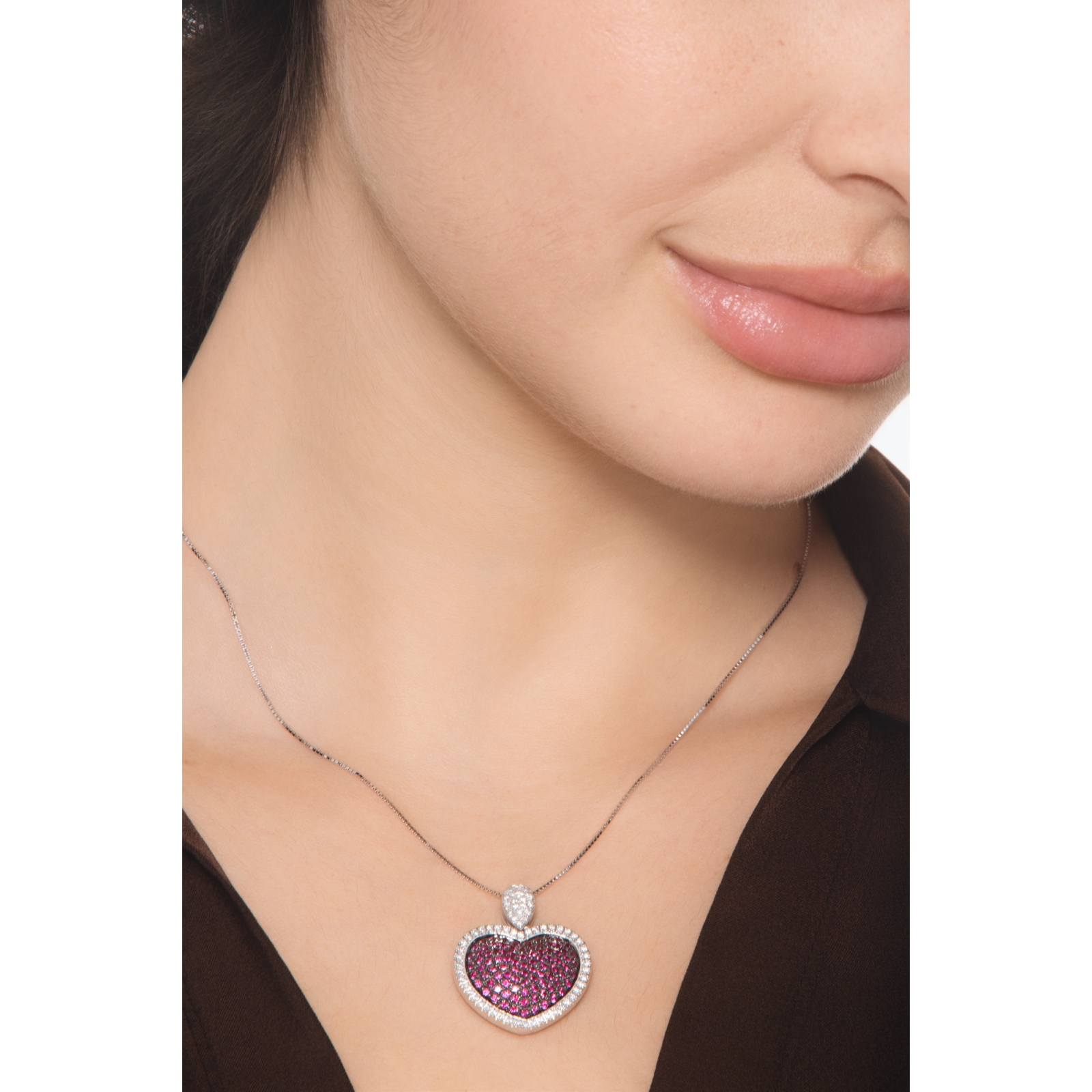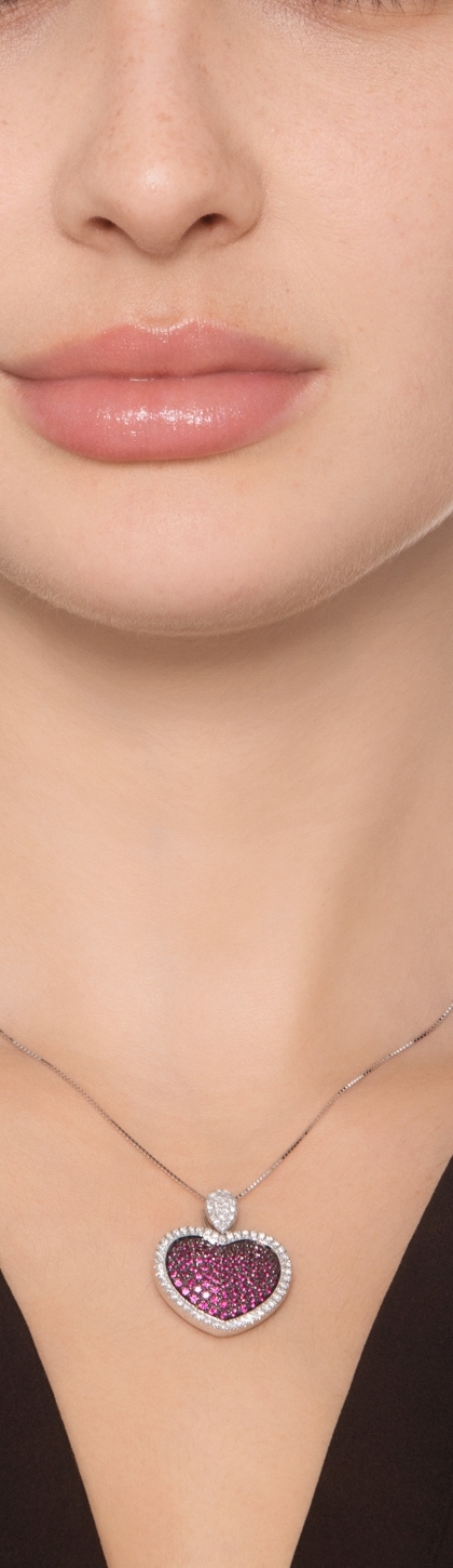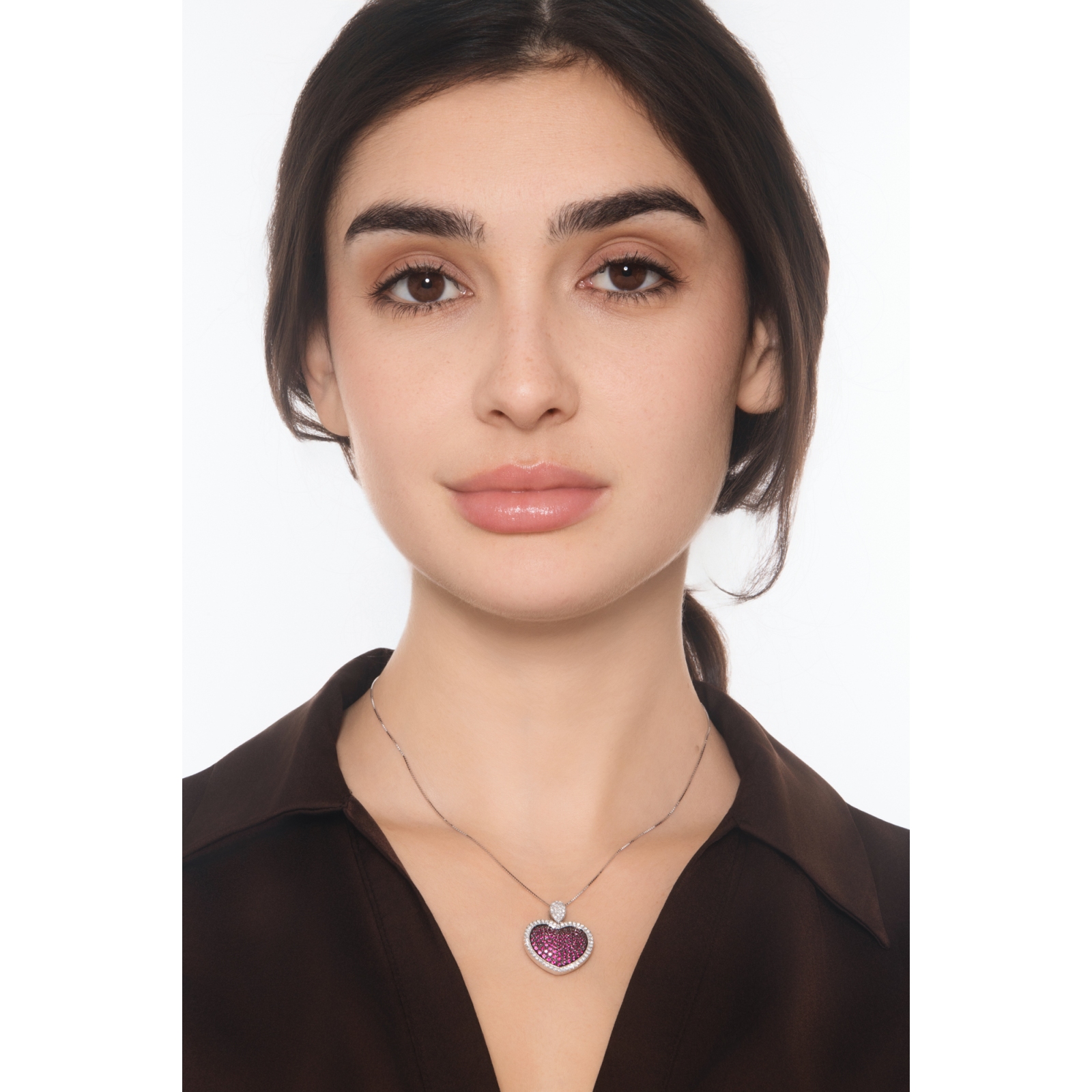 Colgante Corazón Rubíes y Diamantes Oro Blanco 18k