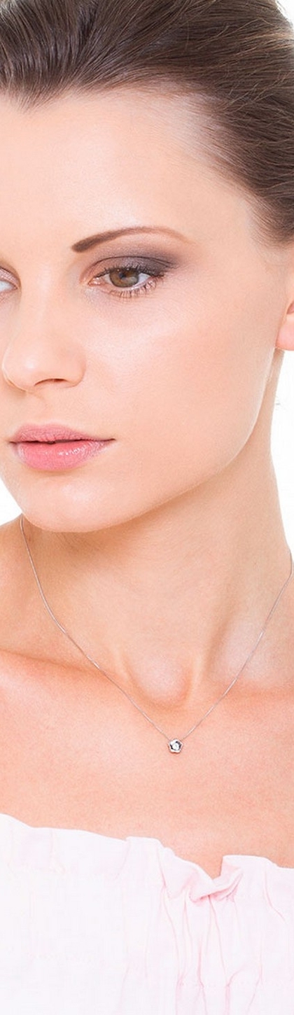 Colgante diamante solitario 0.04 quilates en forma de flor y oro blanco 750