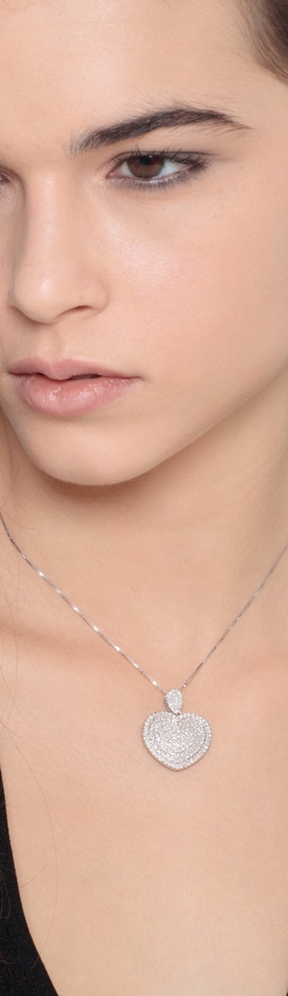 Colgante en forma de corazón de oro blanco de 18 kilates con pavé de diamantes