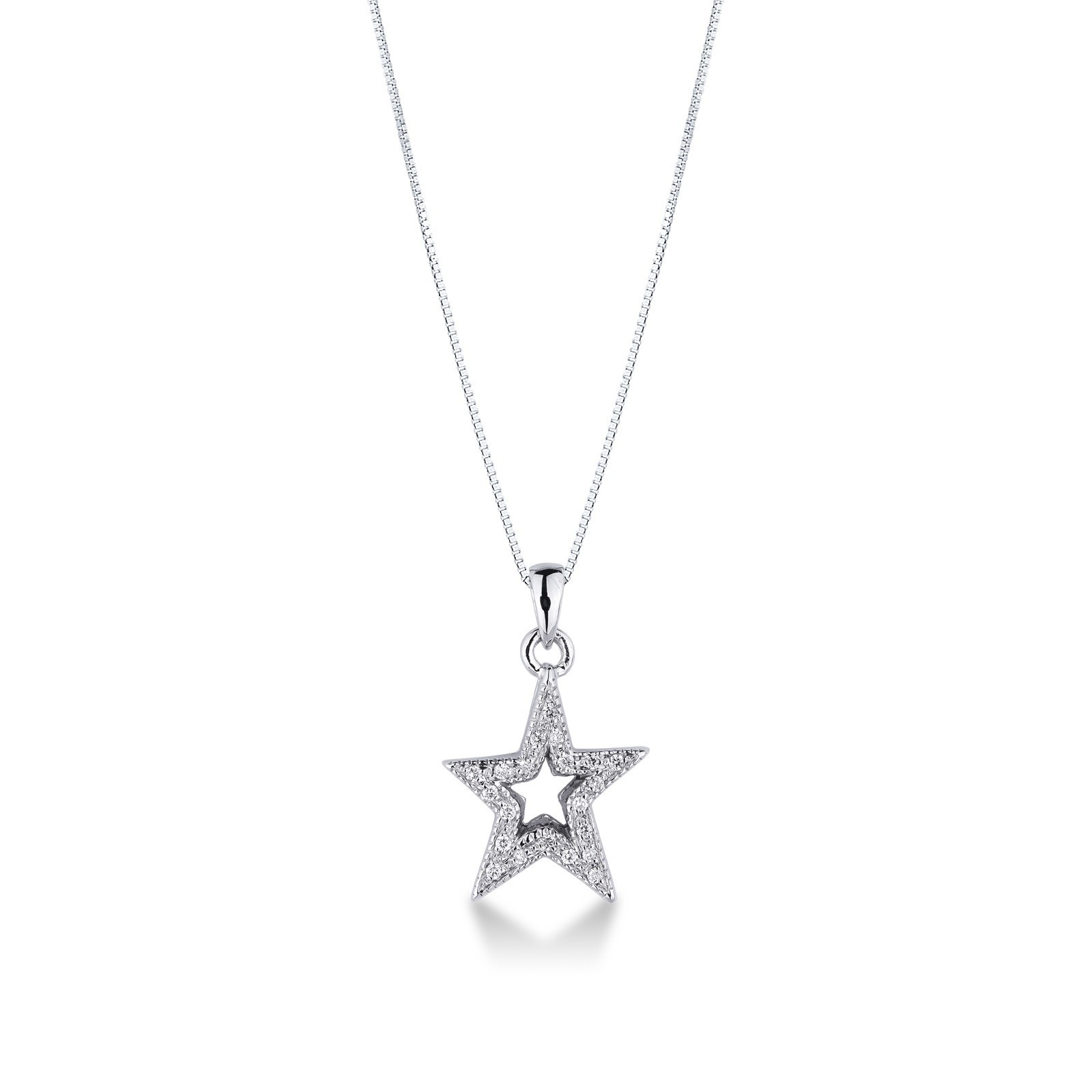 Collar en oro blanco 18k con colgante corazón y diamantes
