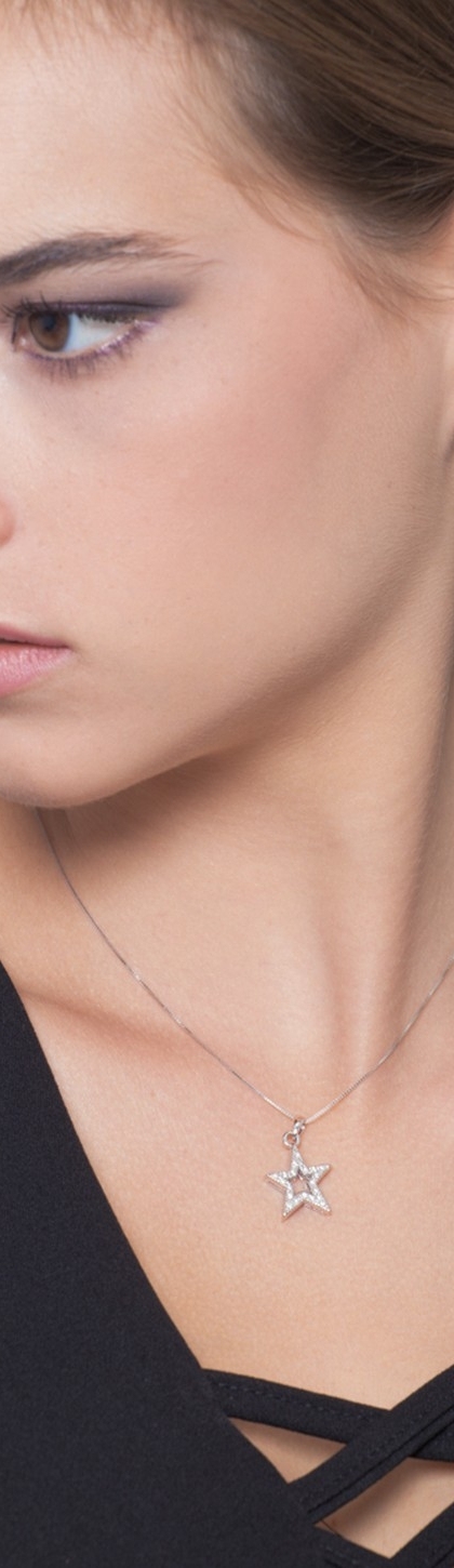 Collar en oro blanco 18k con colgante de corazon en diamantes