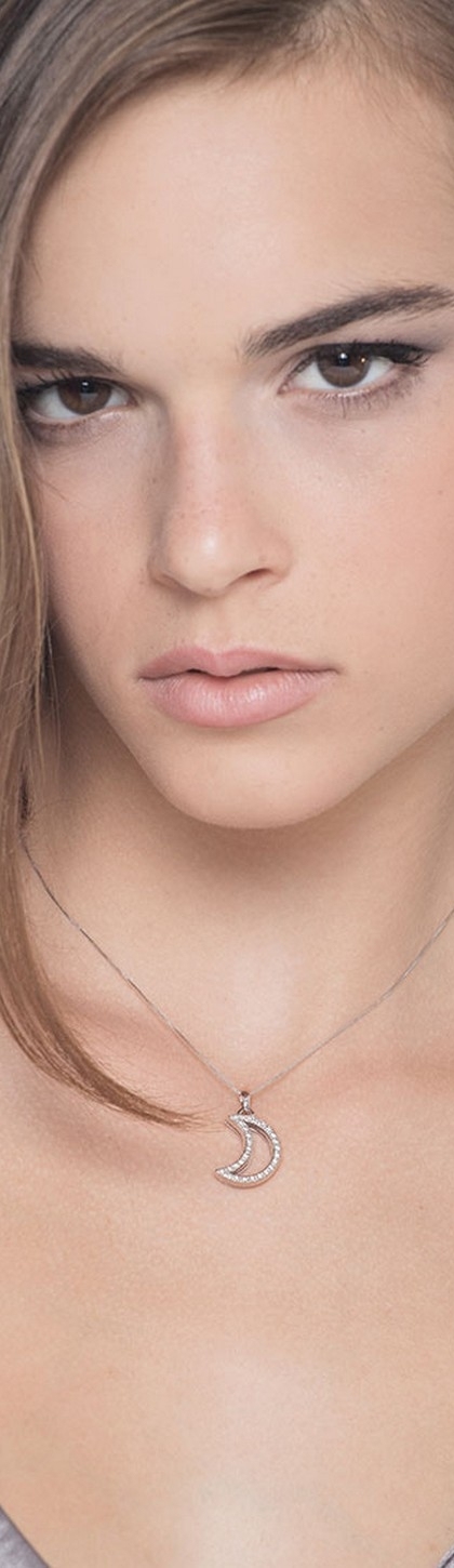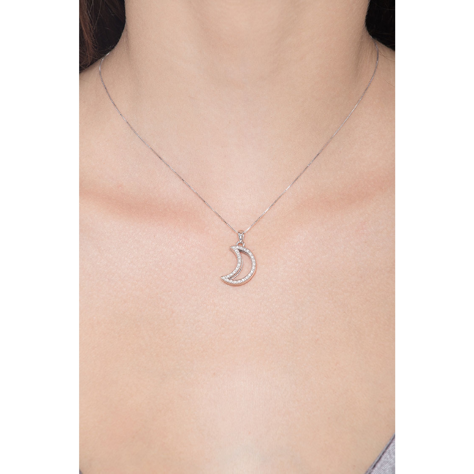 Colgante y cadena Luna y Diamantes en oro blanco 18 kilates
