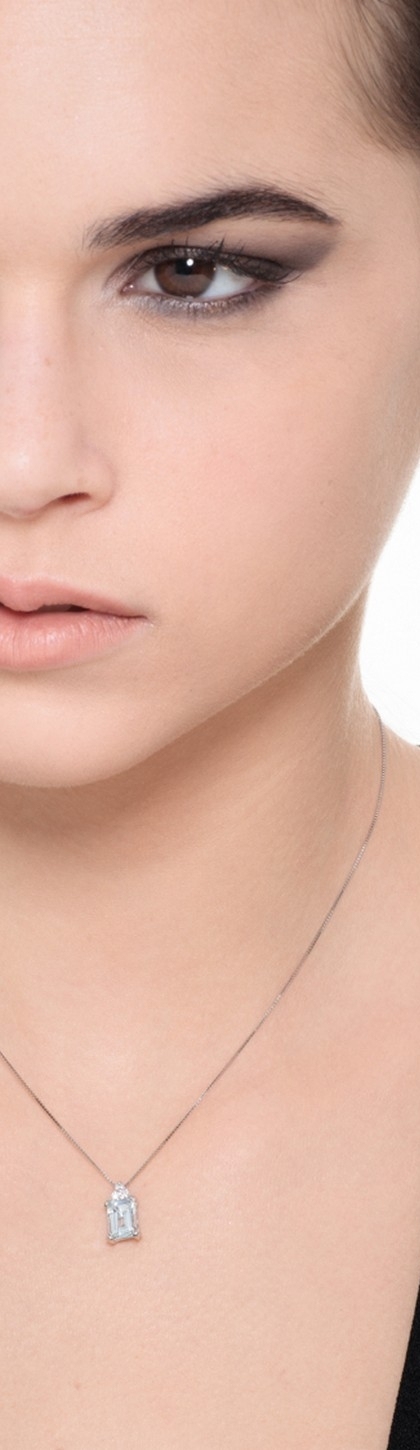Collar aguamarina y diamantes talla esmeralda oro blanco 18k