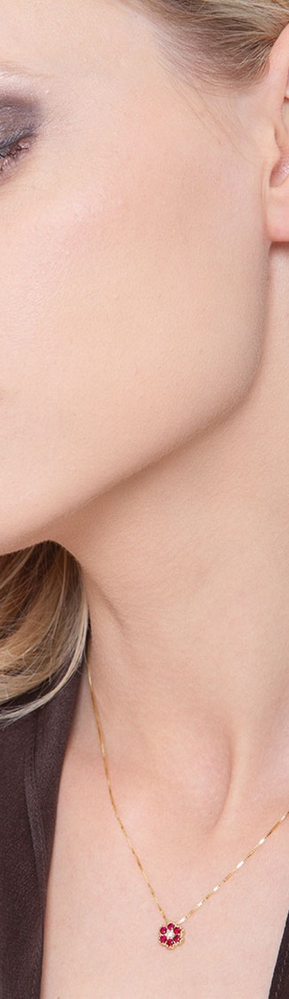 Collar colgante flor oro amarillo 18k con diamante y rubies
