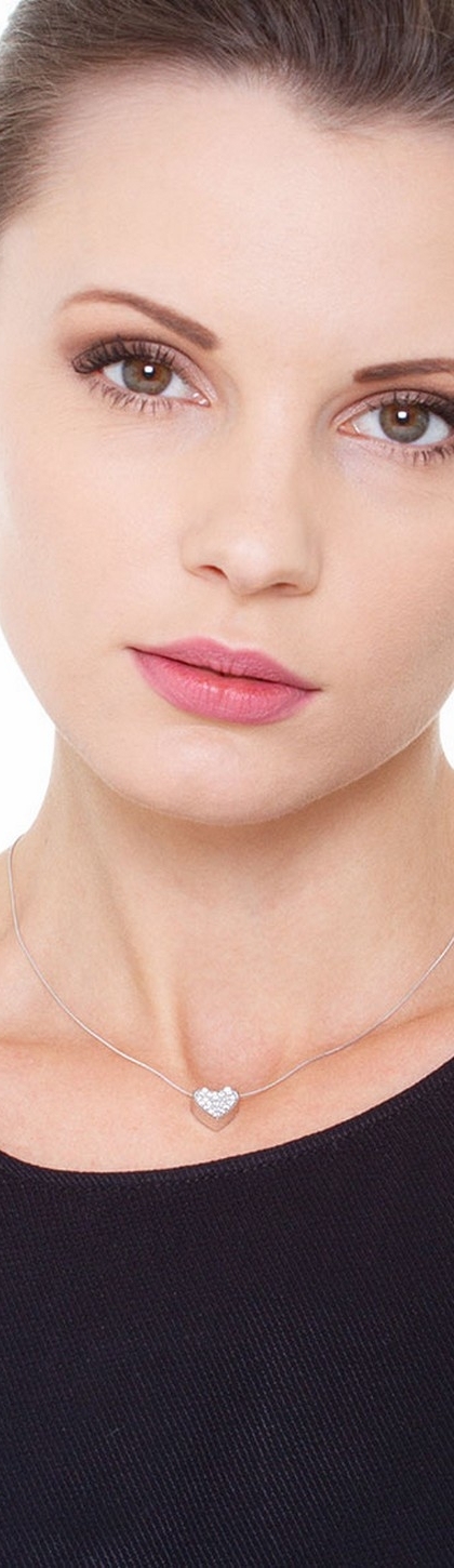 Collar con colgante corazón en oro blanco 18 kt con pavé diamantes