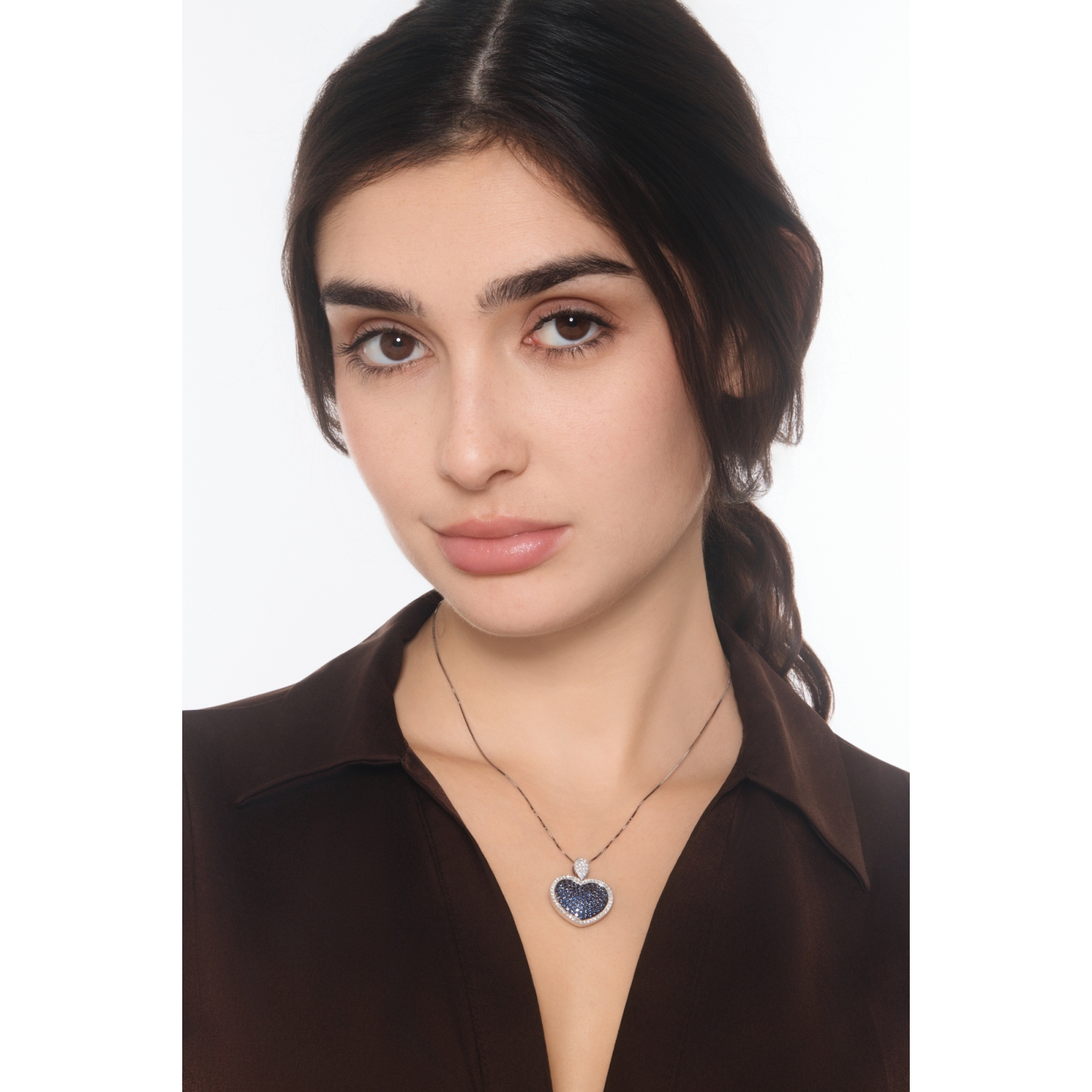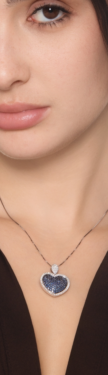 Collar con colgante corazón en oro blanco 18k y zafiros azules