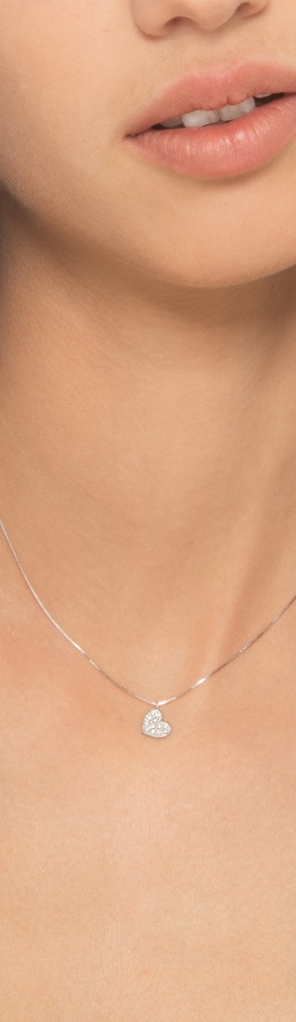 Collar oro blanco 18k con colgante de corazón y diamantes