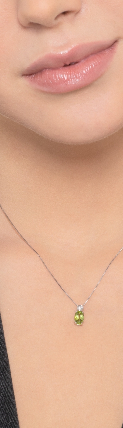 Collar con colgante en oro blanco de 18 quilates con diamante y peridoto