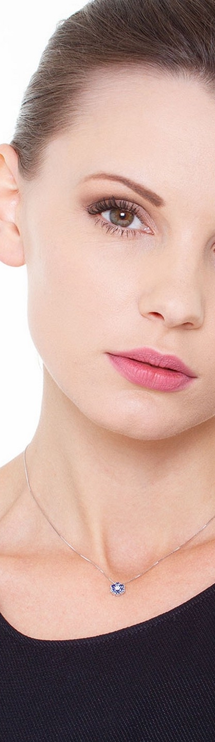 Collar con colgante flor Oro 18k con Diamante y Zafiros Azules