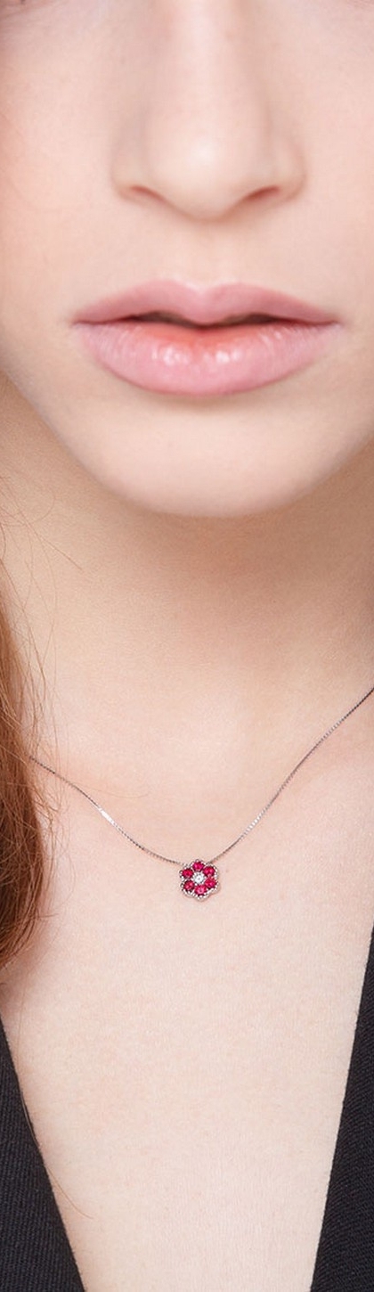 Collar con colgante ilusion en oro blanco 18k con diamante y rubies