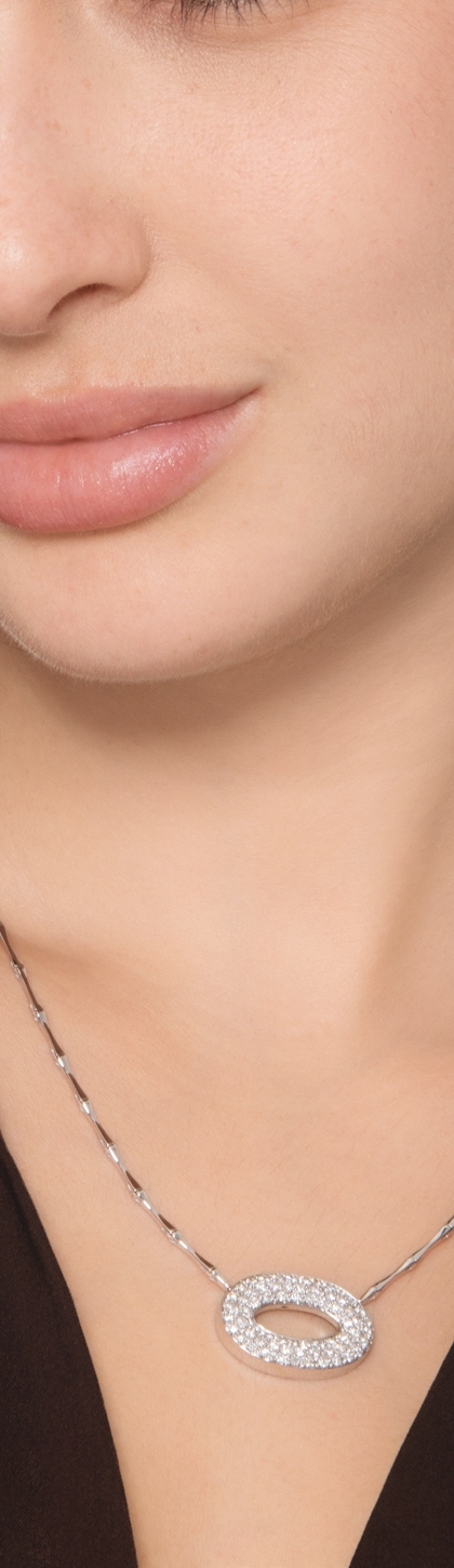 Collar con colgante ovalado pavé en oro blanco y diamantes