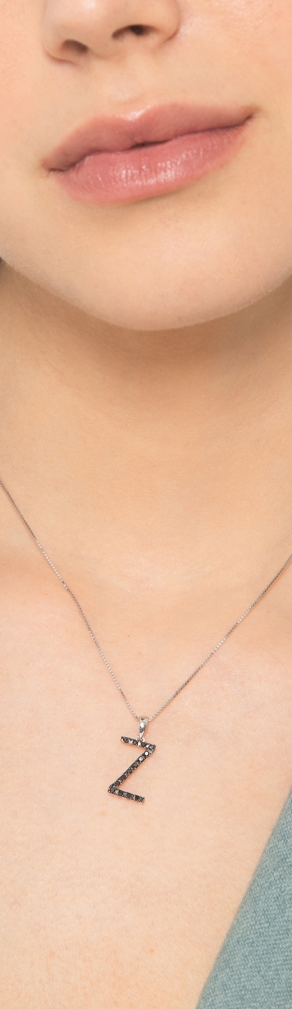 Collar con diamantes negros en oro blanco de 18k letra Z
