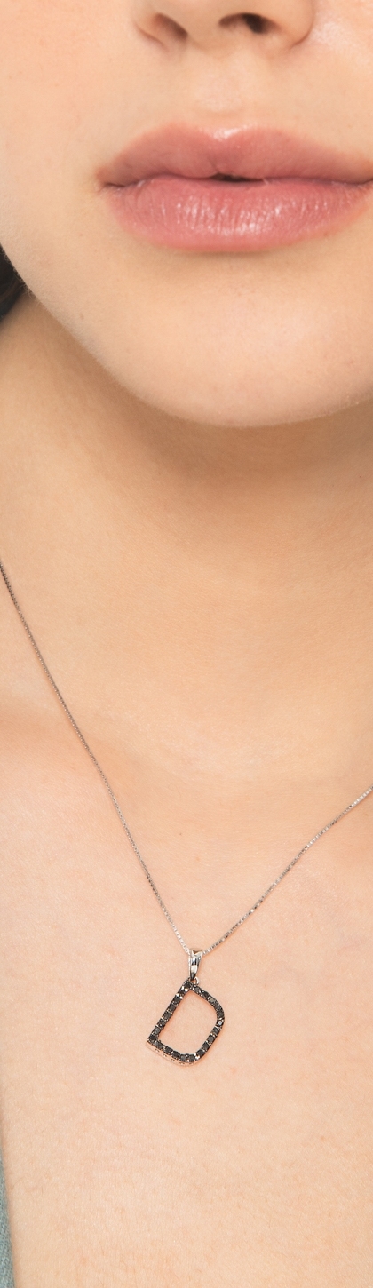Collar con diamantes negros en oro blanco de 18k letra Z