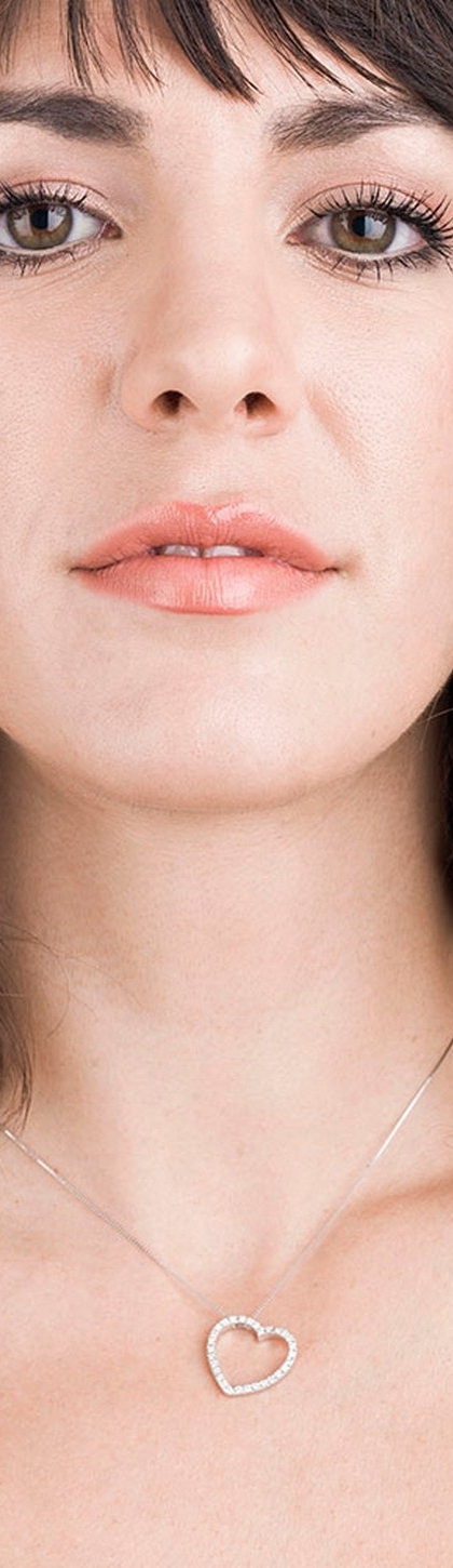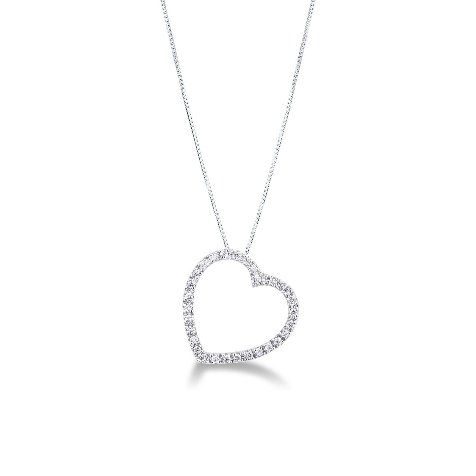 Collar en oro blanco 18k con colgante corazón y diamantes