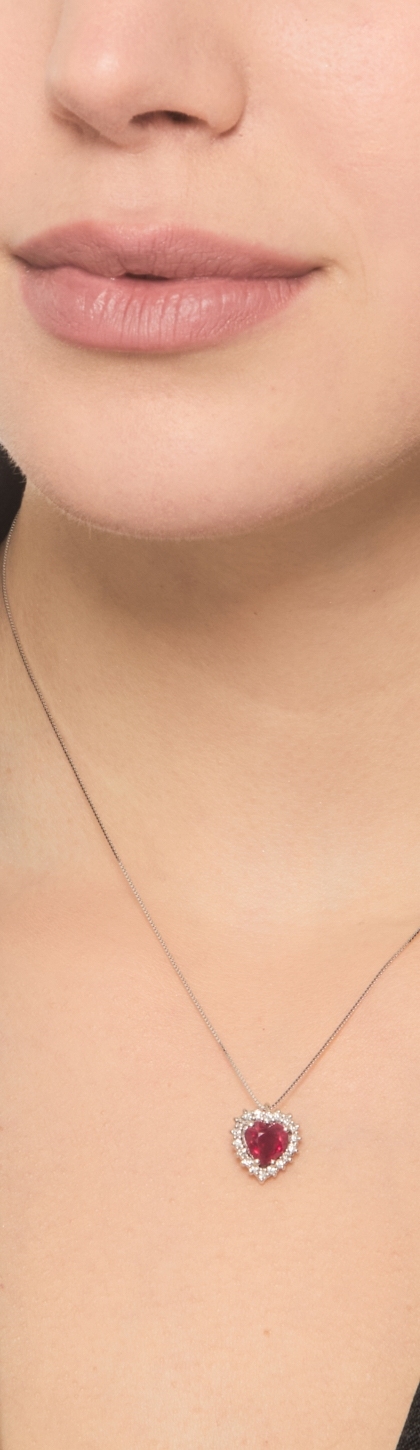 Collar corazón con rubí y diamantes oro blanco 18K