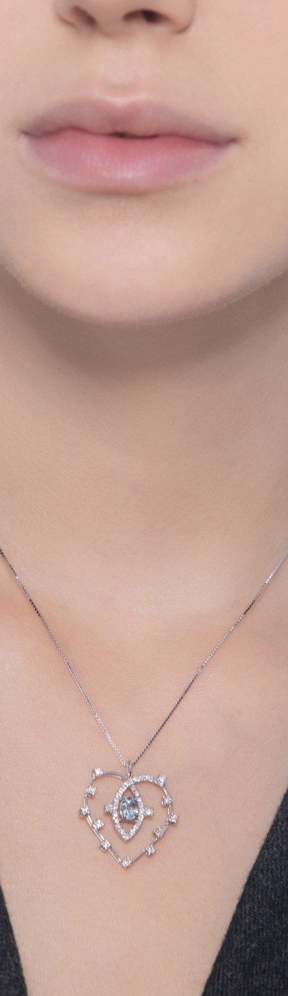 Collar corazón de aguamarina ovalada y diamantes oro 750