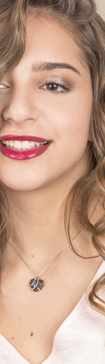 Collar corazón pavé en oro blanco de 18k con diamantes negros y blancos