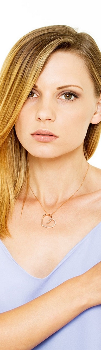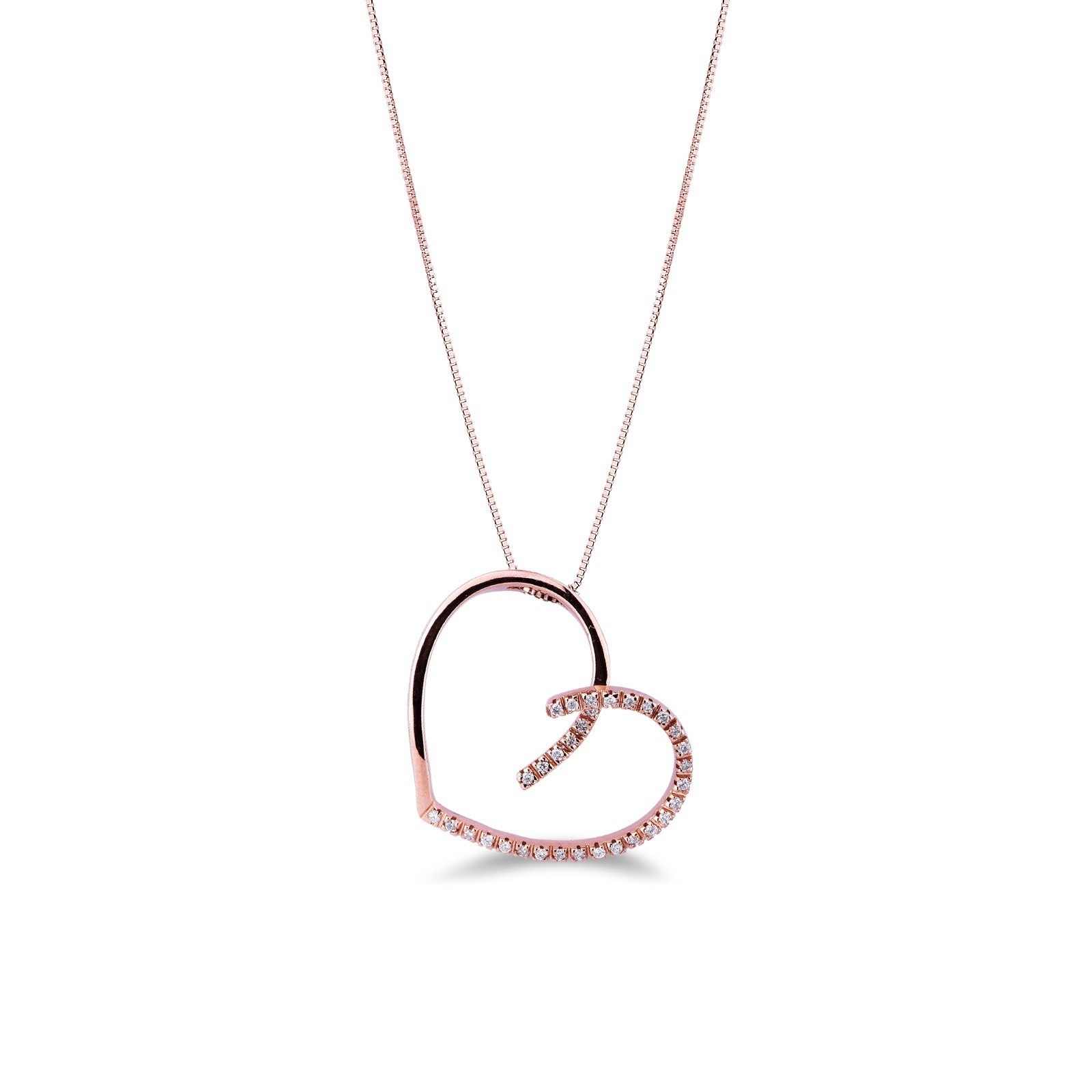 Collar corazon con colgante en oro rosa 18k con diamantes