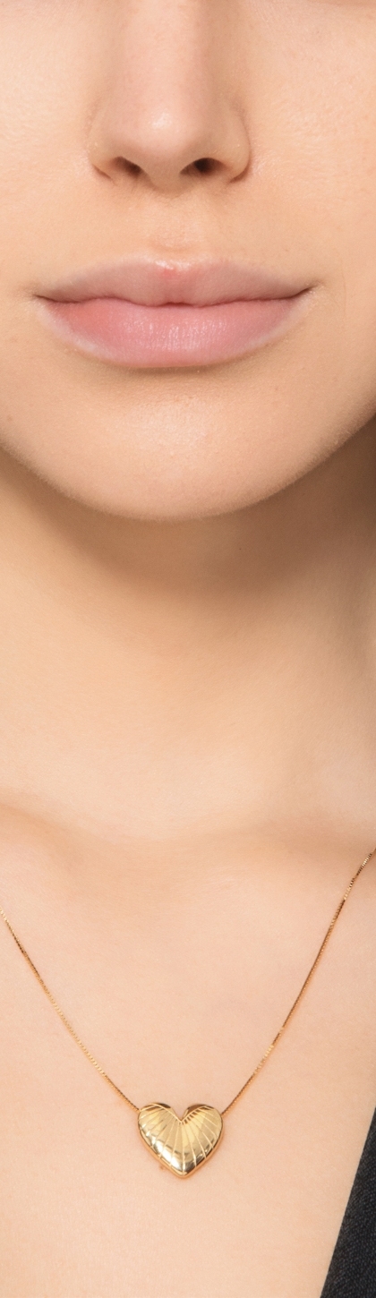 Collar de oro amarillo 18k con colgante corazón texturizado