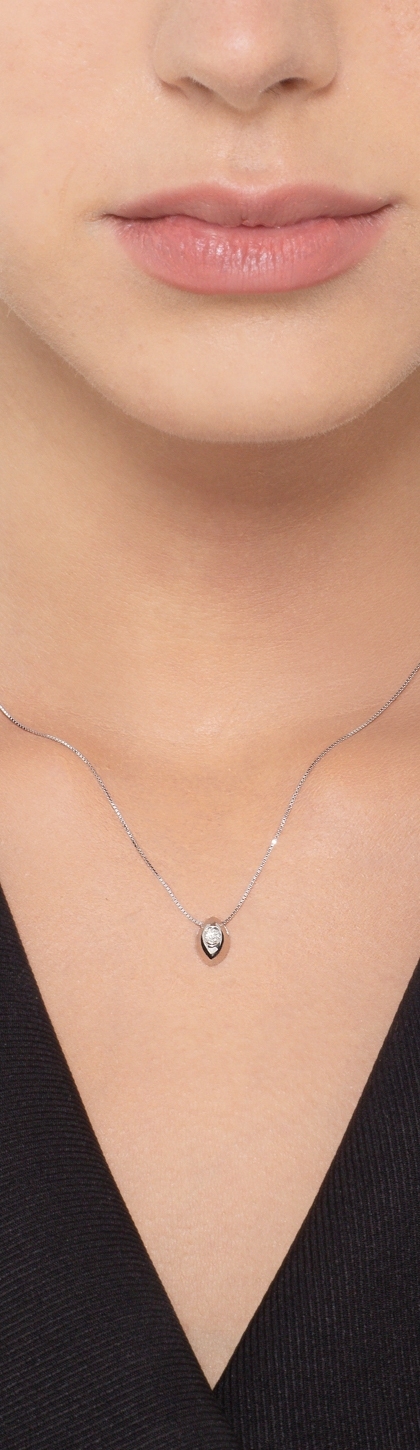 Collar de oro blanco 18k y diamante 0.06 quilates en forma de grano de arroz