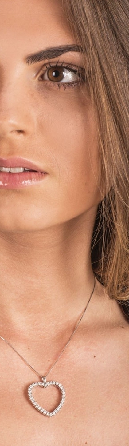 Collar de oro blanco de 18 kilates con colgante en forma de corazón y diamantes