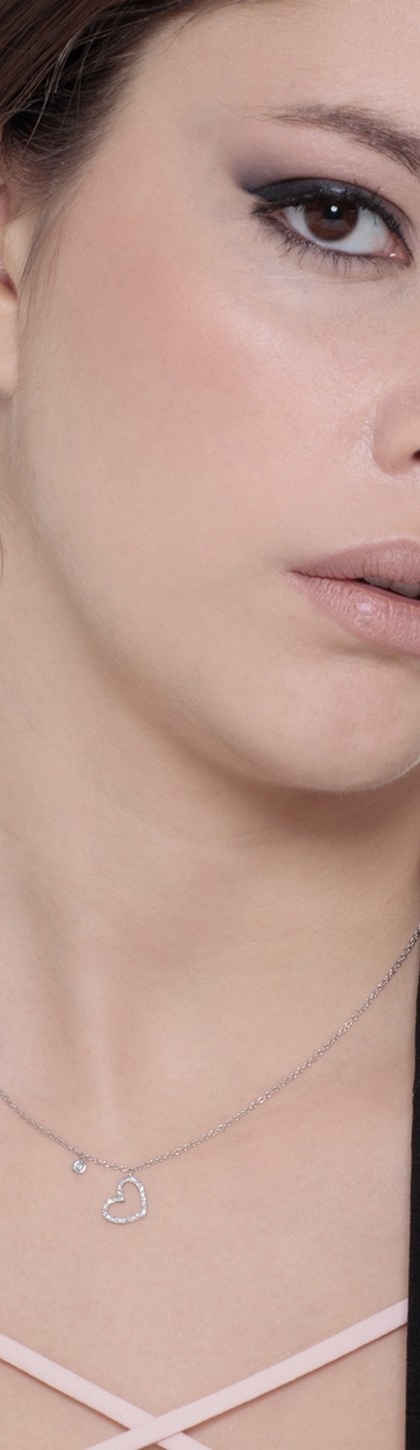 Collar de oro blanco de 18 quilates con colgante de corazón en diamantes y punto de luz