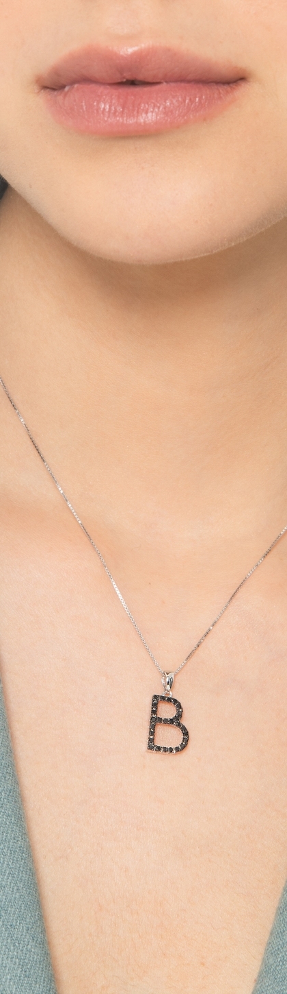 Collar de oro blanco de 18 quilates con colgante letra B grabada y diamantes negros