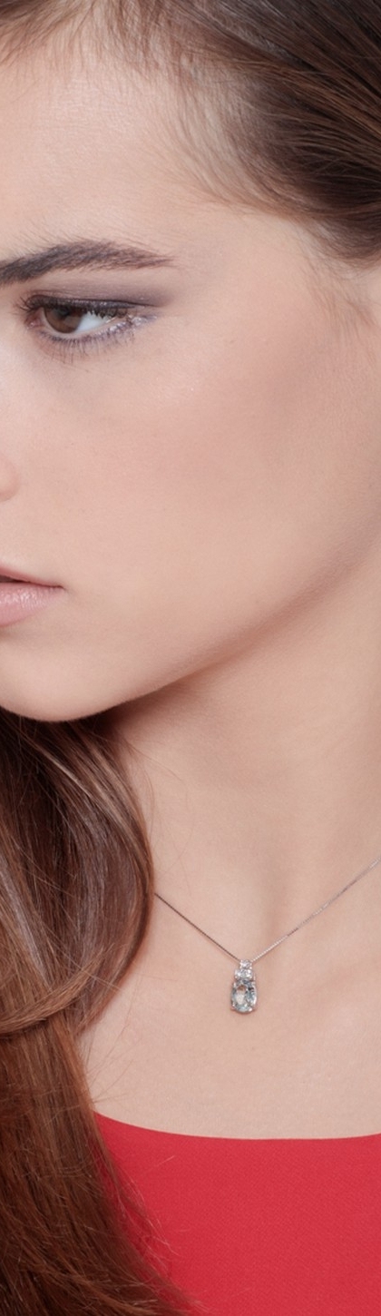 Collar de oro blanco de 18 quilates con diamantes y aguamarina ovalada