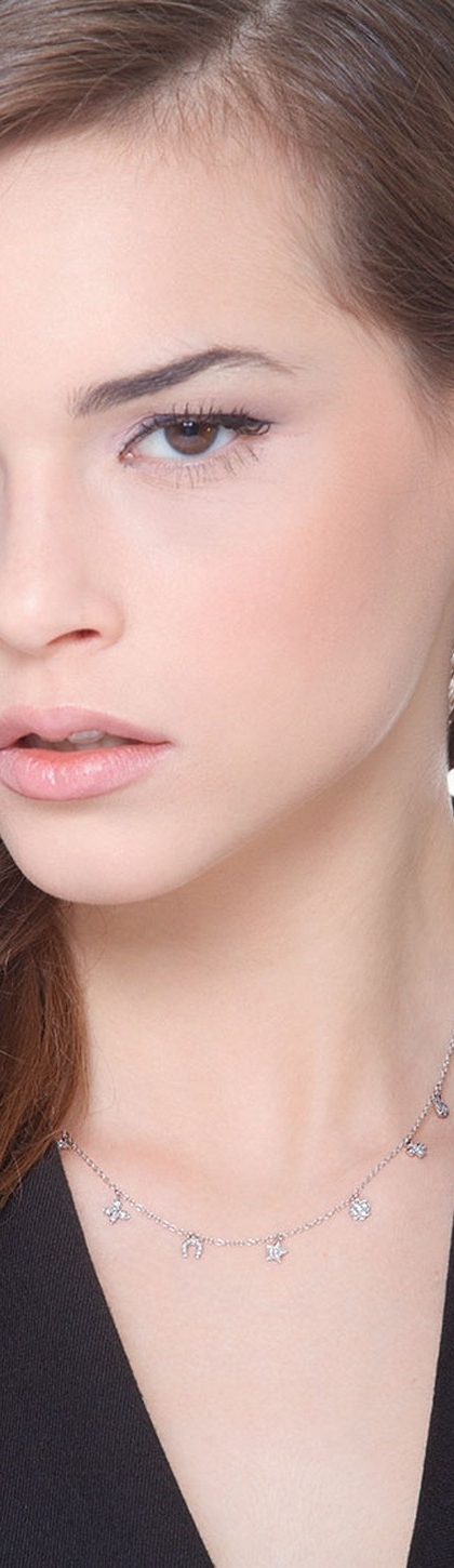 Collar diamantes en oro blanco de 18k con siete colgantes de fantasía
