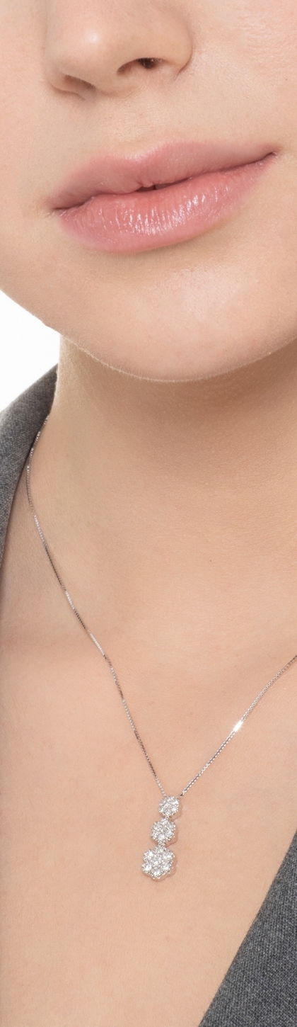 Collar en oro 18k con colgante trilogy en forma de flor con diamantes