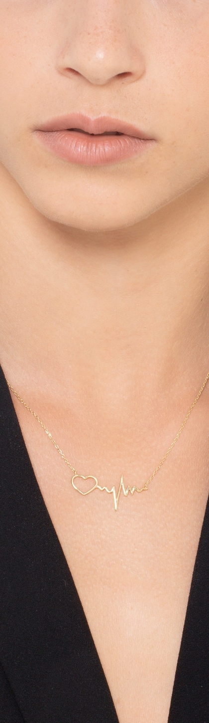 Collar en oro amarillo 18k con corazón y frecuencia cardíaca