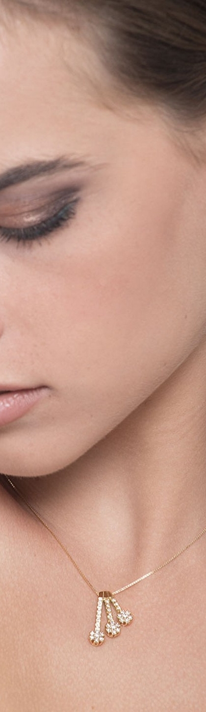 Collar en oro amarillo 18k con diamantes sobre tres flores en degradado