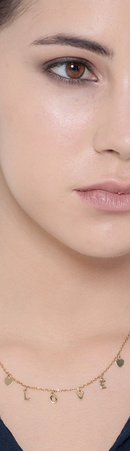 Collar en oro amarillo 18k con dos pequeños corazones e inscripción LOVE