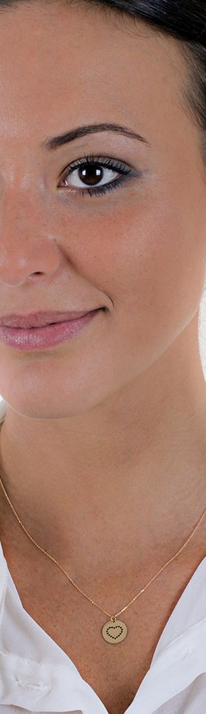 Collar en oro amarillo 18k con medalla plana y corazon calado