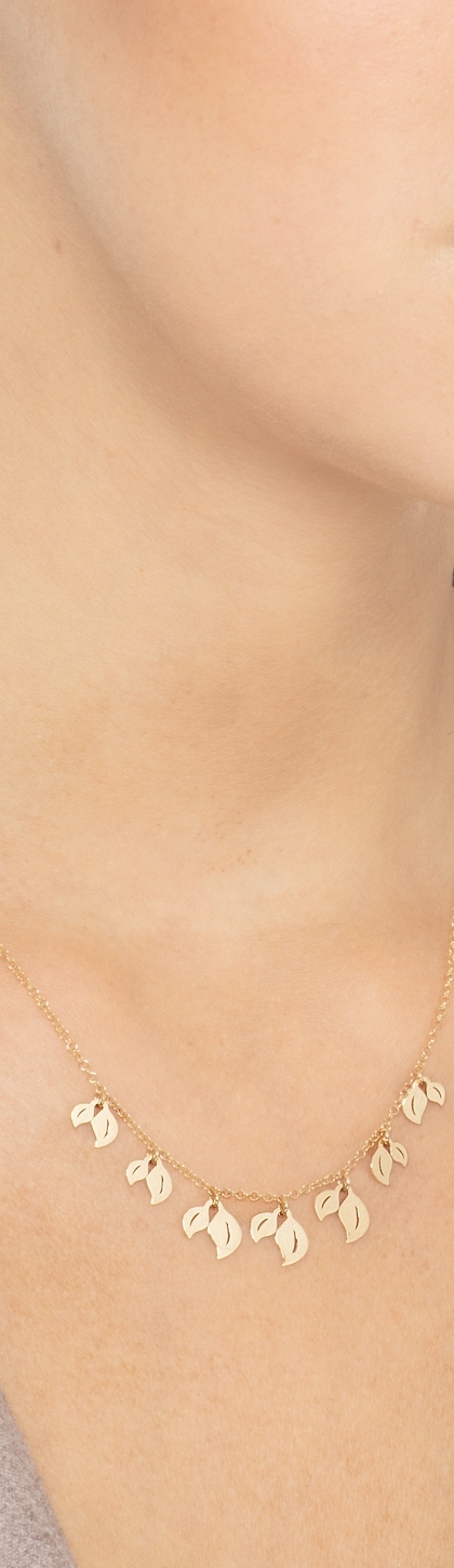 Collar en oro amarillo 18k con siete charms en forma de hoja