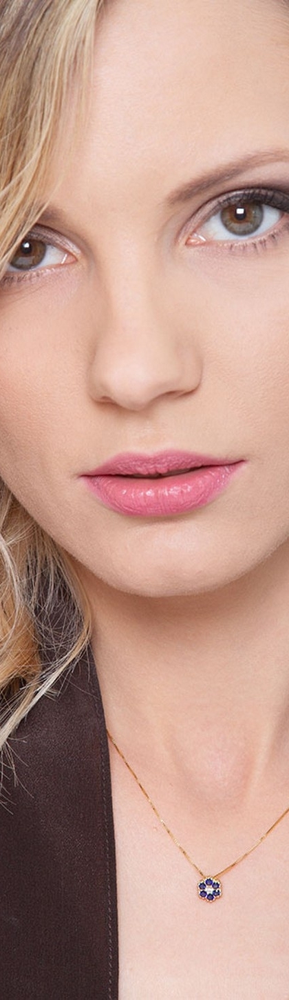Collar en oro amarillo con colgante flor, diamante y zafiros